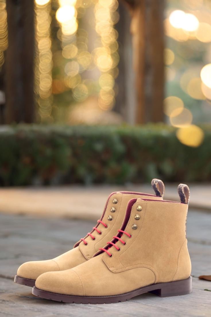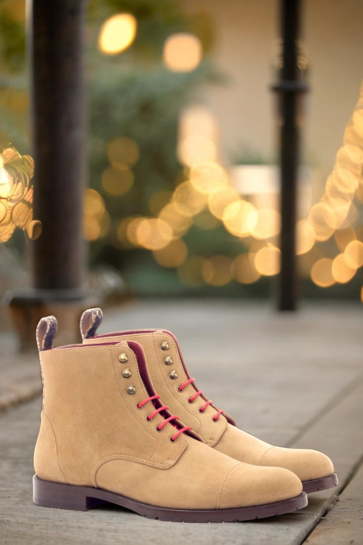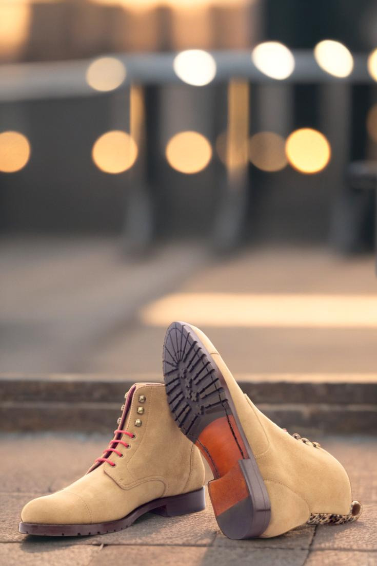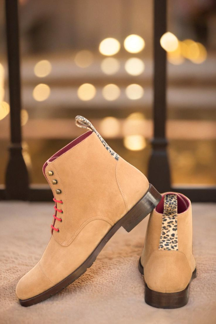 Crafted with utmost care and attention to detail, each pair of these boots is made with a camel kid suede upper, giving them a luxurious feel. The added touch of leopard print flannel adds a subtle yet fierce element to the design. But it’s not just about looks, as the old gold eyelets and vibrant red laces create a bold and eye-catching contrast.