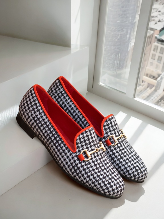 Introducing the ultimate combination of luxury and comfort – The Hinsdale Rd. Women’s Slipper No. 4434 from Robert August. Handcrafted in Spain with the highest quality materials, these slippers are a must-have for any sophisticated woman. The uppers feature a timeless houndstooth pattern, accented with a bold red grossgrain trim and elegant gold bit. But it’s not just about style, the interior is lined with supple red calf leather for a soft and cozy feel against your skin. And when it comes to comfort, our exclusive red leather slipper sole provides a cushioned support that will make you feel like you’re walking on clouds. The black outsole adds a touch of contrast and durability to ensure longevity. With the Hinsdale Rd. Women’s Slipper No. 4434, you’ll look and feel your best every time you slip them on. Upgrade your loungewear game with these statement slippers and elevate any outfit effortlessly. Order now and experience the perfect blend of elegance and practicality, brought to you by Robert August.
